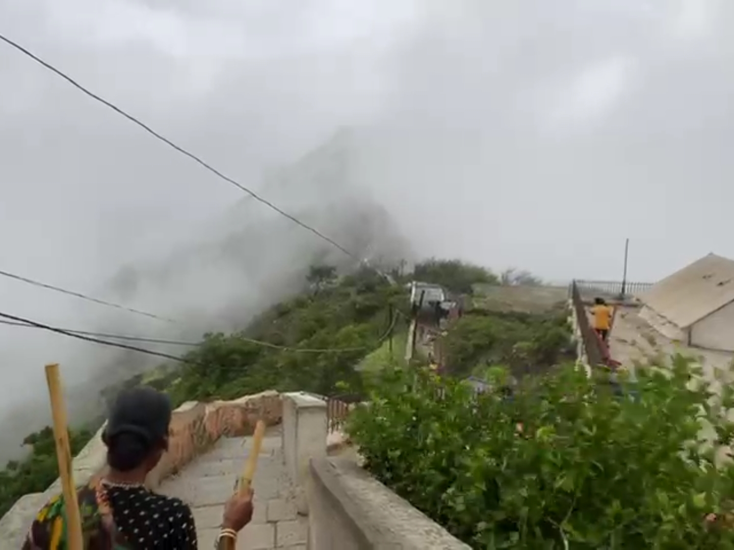 આજે સવારથી જૂનાગઢમાં આવેલા ગિરનાર પર્વત પર પણ વાદળોના સામ્રાજ્ય વચ્ચે ધીમી ધારે વરસાદ વરસી રહ્યો હતો. આમ, વરસાદી માહોલના ગિરનાર પર્વત પરનો અદભુત નજારો જોવા મળ્યો હતો. ગિરનાર પર્વત પર જ્યારે વરસાદ પડે છે ત્યારે અદભુત દૃશ્યો સર્જાયેલાં જોવા મળે છે, જેમાં ગિરનાર શિખર પર્વત સાથે જાણે વાદળો વહાલ કરતાં હોય એવો નજારો જોવા મળે છે. દર વર્ષે ચોમાસાની સીઝન દરમિયાન વરસતા વરસાદી માહોલમાં ગિરનાર પર્વતની સુંદરતા અને પ્રકૃતિ સોળે કળાએ ખીલી ઉઠેલી જોવા મળે છે. એને જોવાનો લહાવો લેવા જેવો હોય છે. ચોમાસામાં ગિરનાર પર્વત પરથી અનેક ઝરણાં સજીવન થઈ વહેતાં જોવા મળે છે. પર્વતનાં પગથિયાં પરથી પણ પાણી ખડખડ વહેતું વહેતું નીચે જતું જોવા મળે છે. આવો અદભુત નજારો જોવાનો લહાવો લેવા મોટી સંખ્યામાં પ્રકૃતિપ્રેમીઓ અને પર્યટકો ગિરનાર પર્વતની મુલાકાત લે છે.